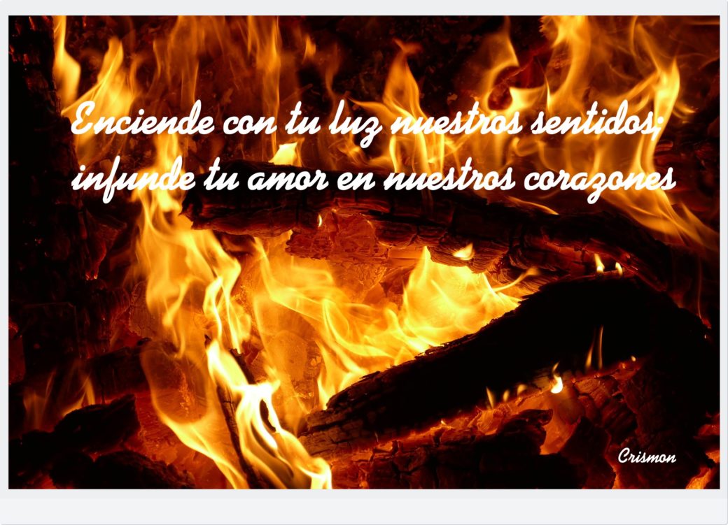 Ven, Espíritu Creador, visita las almas de tus fieles y llena de gracia los corazones, que Tú mismo creaste. Tú eres nuestro Consuelo, don de Dios Altísimo, fuente viva, fuego, caridad y espiritual unción. Tú derramas sobre nosotros los siete dones; Tú, el dedo de la mano de Dios; Tú, el prometido del Padre; Tú, que pones en nuestros labios los tesoros de tu palabra. Enciende con tu luz nuestros sentidos; infunde tu amor en nuestros corazones; y, con tu perpetuo auxilio, fortalece nuestra débil carne. Aleja de nosotros al enemigo, danos pronto la paz, sé Tú mismo nuestro guía, y bajo tu dirección, evitaremos todo lo malo. Que por Ti conozcamos al Padre, y también al Hijo; y que en Ti creamos en todo tiempo.